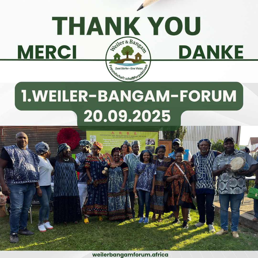 Das 1. Weiler–Bangam-Forum am 20. September 2025 war ein besonderer Moment der Begegnung, des Austauschs und des Miteinanders. Gemeinsam haben wir gezeigt, dass Freundschaft Brücken baut – über Kontinente, Generationen und Kulturen hinweg.