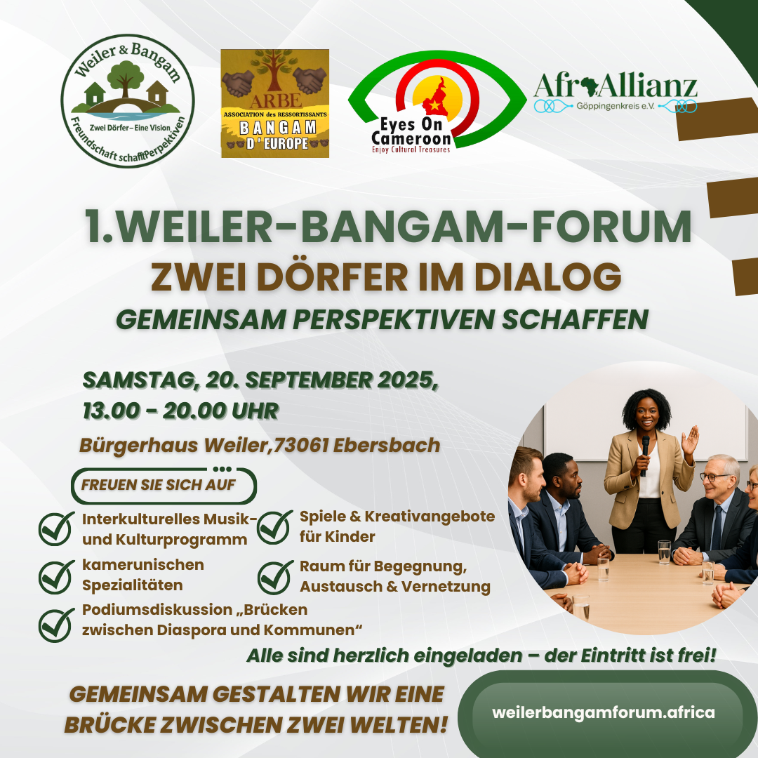 Am 20. September 2025, dem Weltkindertag, lade ich dich herzlich zum 1. Weiler–Bangam-Forum ein. Ein Tag, der zwei Dörfer miteinander in Verbindung bringt:
